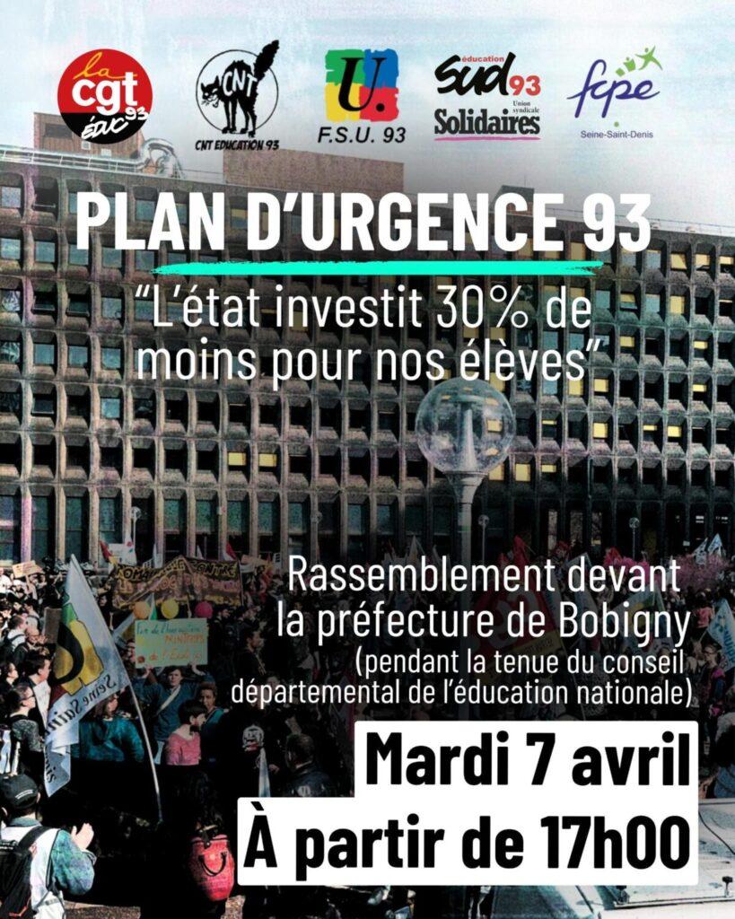 Plan d’urgence 93 – Rassemblement mardi 7 avril à 17h (Intersyndicale 93)